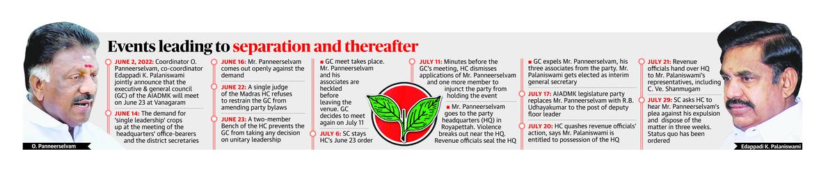 “The party’s future depends upon his [Mr. Palaniswami’s] leadership and ability to carry forward the organisation,” says G. Palanithurai, a veteran academic in political science and public administration. The interim general secretary had shown his managerial skills when he, as the Chief Minister, had run the administration “without invoking much resentment among the public”. A chronicler of the AIADMK commends Mr. Palaniswami for having taken a non-compromising stand against accommodating Ms. Sasikala or Mr. Dhinakaran at the time of the 2021 Assembly election, despite the BJP’s advice to do so.